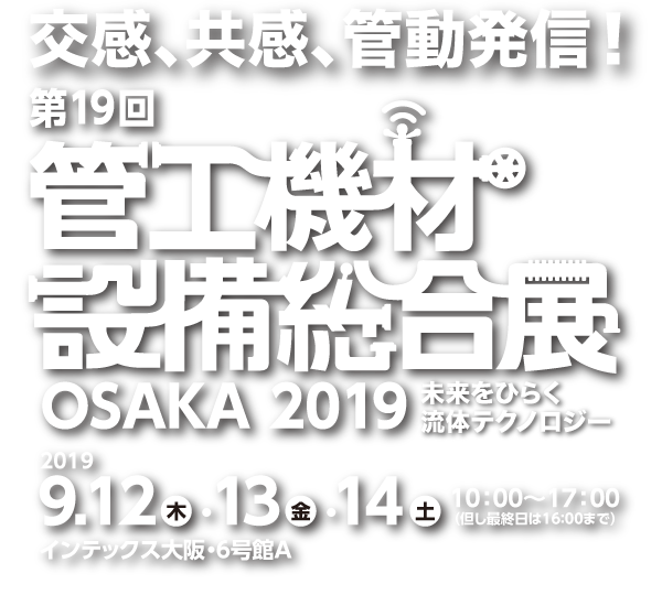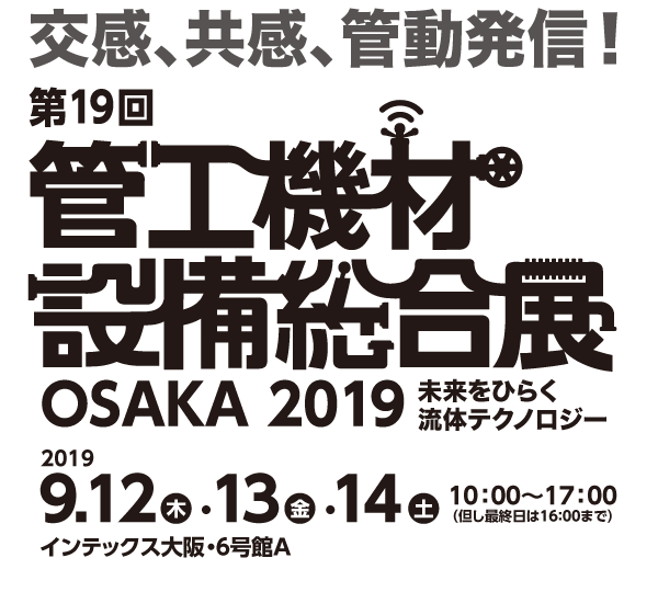 ●主 催 : 大阪管工機材商業協同組合 ●共 催 : 大阪ポンプ卸商組合、(一社)日本能率協会 ●後 援 : 経済産業省近畿経済産業局、大阪府、大阪市、大阪商工会議所、大阪府中小企業団体中央会、(一社)大阪卸商連合会、(一社)全国管工機材商業連合会、 京都管工機材商業協同組合、大阪府水道工事業協同組合連合会、大阪市管工設備協同組合、関西配管工事業協同組合、(一社)大阪空気調和衛生工業協会、 (一社)大阪建設機械器具協会、近畿ダクト工事業協同組合